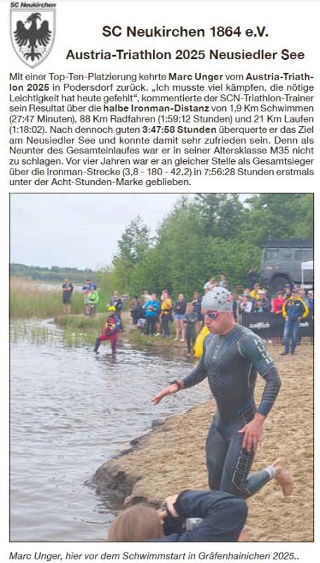 Unser Trainer Marc Unger hat im Burgenland in Österreich eine Mitteldistanz absolviert. Podersdorf liegt am östlichem Seeufer des Neusiedler Sees nahe der Ungarischen Grenze.