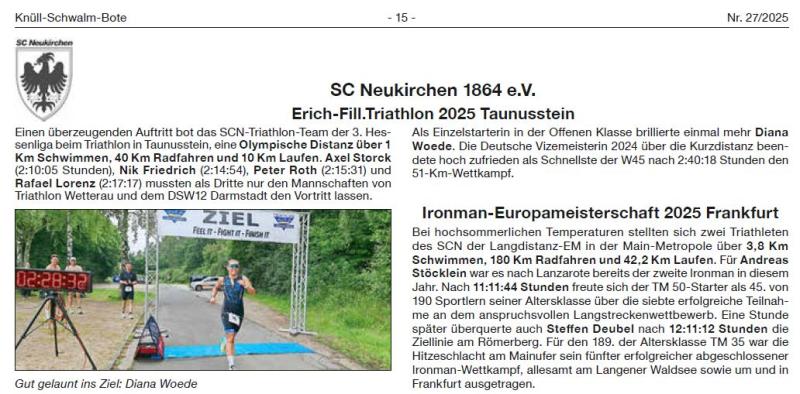 An einem der heißesten Tage im Juni 2025 haben sich unsere beiden Sportkameraden Andreas Stöcklein und Steffen Deubel nach Frankfurt begeben, um dort einen Ironman zu absolvieren.