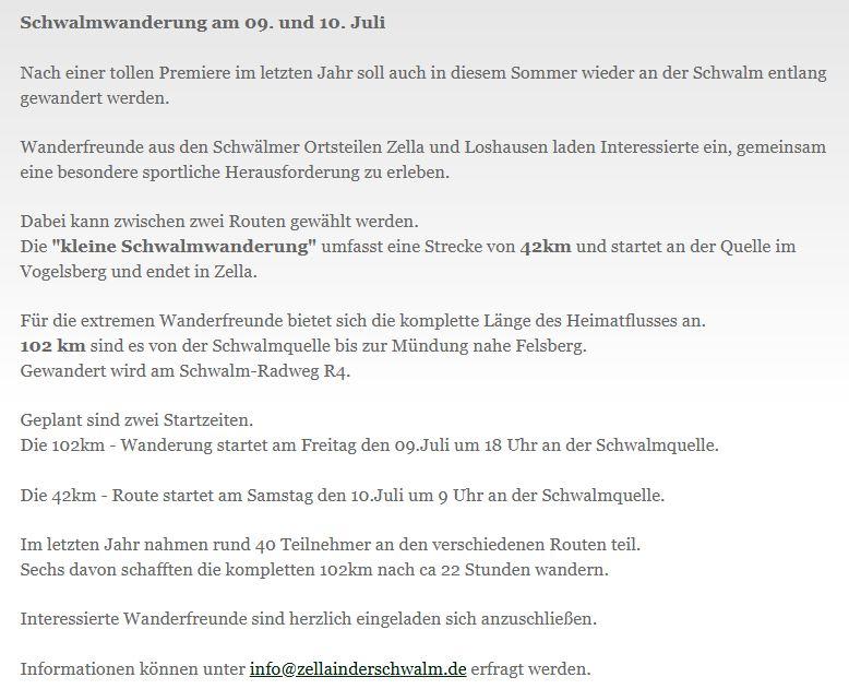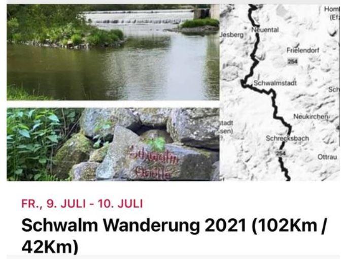 Unser Sportkamerad Harmut Schenk (Schroter) hat sich drangemacht, die 102 km von der Schwalmquelle bis Felsberg unter die Sohlen zu nehemn. 102 km. 17:28 Stunden das sind 5,84 km/h Ist das noch eine Wanderung??
