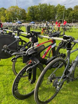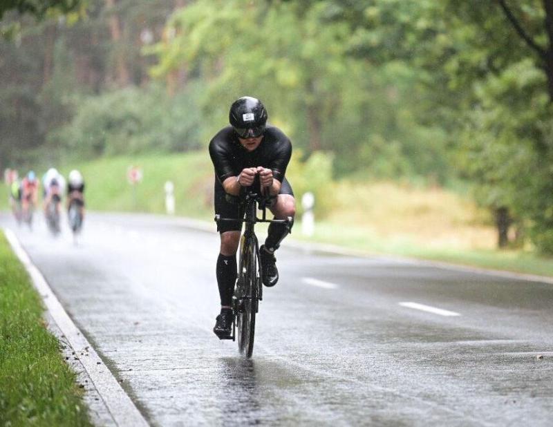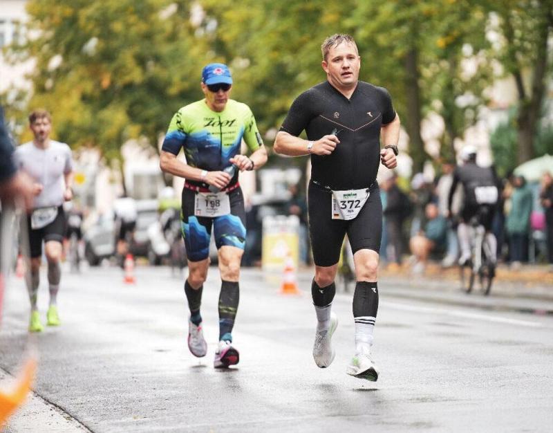 Unseren Sportkameraden Nick Friedrich hat es nach Berlin verschlagen, um dort im Stadteil Erkner eine Mitteldistanz zu absolvieren. Rennberiicht von Nick: Das Wetter war sehr regnerisch und windig am Rennmorgen. Bei 13 Grad Außentemperatur und 19,1 Grad Wassertemperatur war das Schwimmen sehr angenehm. Hatte allerdings Probleme bei der Orientierung und es war ein ziemliches gekloppe während des Schwimmens. Nach 34 Minuten war ich aber dann doch recht zufrieden. Wechsel aufs Rad lief super. Die ersten Kilometer führen durch die Stadt Erkner, durch den Dauerregen war es ziemlich glatt auf den Straßen. Nachdem ich bei Kilometer 4 die ersten beiden Athleten am Streckenrand liegen gesehen hatte, war für mich „Safety First“ angesagt. Die Verpflegung lief echt gut und ich konnte dann trotz der Bedingungen gut pushen und richtig viele Plätze gut machen. Nach 2h18min abgestiegen. Wahnsinn! Damit hatte ich tatsächlich nicht gerechnet. In T2 nochmal frische trockene Socken angezogen und dann ging es zum Laufen. Ich habe mir bewusst vorgenommen die erste Runde nur nach Gefühl zu laufen. Als ich dann das erste Mal auf die Uhr schaute, konnte ich es auch dort kaum glauben…so schnell bin ich im Training nicht gelaufen. 😅