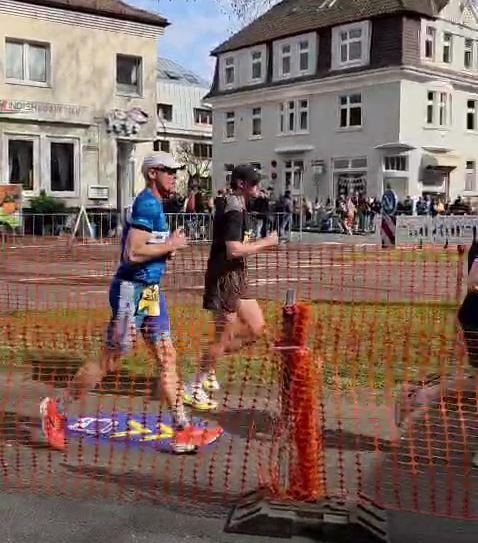 Martina Spreer mit Sohn Alex, Torsten K-S, Claus G., Marcel M. und Jürgen K. haben sich nach PAD begeben, um den Osterlauf zu absolvieren. Jürgen hatte Pech. Er wurde von einem anden angerempelt und ist gestürzt. Er musste den Lauf abbrechen. Marcel hatte die Aufgabe als Peacemaker zu funktionieren.