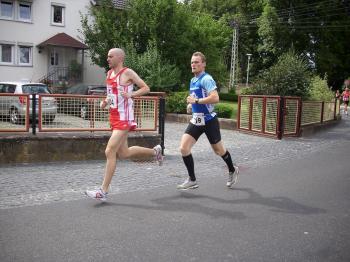 Bernd und Stefan in guter Form Am Samstag den 24.07.2010 fand in Niederurff der 3.Brückenlauf statt. Zwei Athleten von uns gingen an den Start und zeigten bei optimalen äußeren Bedingungen sehr gute Leistungen und Platzierungen auf einer sehr abwechslungsreichen und gut profilierten Strecke. Bernd startete im Feld über die 5,7km und gewann in einer Zeit von 24:03min. wie gewohnt die AK60. Trotz dieser guten Zeit war er der Meinung es wäre noch ein bisschen mehr drin gewesen...na dann Bernd,der nächste Wettkampf kommt bestimmt ;-) Über die 10km Strecke,die etwas kürzer geraten war (ca. 9,8km) lief Stefan vom Start weg mit Matthias Lohr vom Tuspo Borken an die Spitze und zog das Feld weit auseinander. Bis km 6 etwa blieb Stefan dem Führenden auf den Fersen,doch am Ende musste er ihn doch etwas ziehen lassen. Mit einer absolut zufriedenstellenden Zeit von 37:56min. kam er etwa eine Minute nach dem Sieger als Zweitplatzierter ins Ziel und gewann damit die AK20. Bilder folgen...