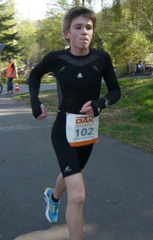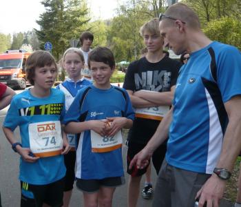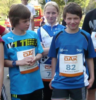 Schnell war somit klar, das dieser Wettkampf für alle eine Trainingseinheit werden würde. Die Jüngsten, Timo, Julius und Johanna, wurden mit "Engelszungen" gebeten, sich nicht an einem schnellen Rennbeginn zu beteiligen. Die Drei haben sich vorbildlich an die Vorgabe der Trainerin und des "alten Mannes"gehalten und konnten sich im Ziel über gute Endzeiten freuen. Doro, Sandra, Bernd, Philipp S. und Jonas gingen gemeinsam an den Start. Bernd war froh, an diesem Tag nicht die Langstrecke gewählt zu haben, obwohl er die Wärme mag. Jonas lief gemeinsam mit einem Mitstreiter und die Beiden waren sich schnell einig, dass dies nur ein Trainingslauf werden sollte. Phillip, der versuchen wollte, seine Zeit aus dem letzen Jahr zu verbessern, entschied sich dazu, sich im Ziel überraschen zu lassen und bat darum, ihm keine Zeiten zuzurufen. Der "Druck" war weg und im Ziel konnte er sich über eine neue Bestzeit freuen! Glückwunsch!!! Doro und Sandra hielten sich gut im Starterfeld der Damen. Sie waren froh, dass sie im Verlauf des Rennens immer besser in Tritt kamen und sich kontinuierlich nach vorne arbeiten konnten. Beim abschließenden Männerlauf gingen Andre L., Martin H., Thomas, Marc und Axel St. an den Start. Die Männer mussten den größten Teil der Strecke in der warmen Sonne zurücklegen. So kam es, dass dem ein oder anderen die Beine einfach nicht mehr gehorchen wollten, irgendwo unterwegs plötzlich einfach der Hammer zuschlug und es ging einfach nichts mehr. Marc zeigte vom Start weg seinen mitlerweile typischen "Kampfeinsatz", musste in der zweiten Runde den Führenden Marco Schwab ziehen lassen. Trotz allem dauerte es aber noch eine Zeit, bis er die restlichen Kilometer "locker" zu Ende lief. Der "alte Mann" zeigte ein gutes Rennen. Kein Wunder, es ist nun mal voll und ganz sein Wetter! :-) Martin und Axel konnten sich über einen gut eingeteilten Lauf freuen.