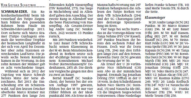 Veranstalter: Schwalm Eder Laufcup Externer Link zu den Ergebnissen