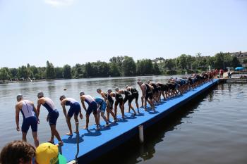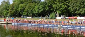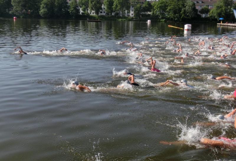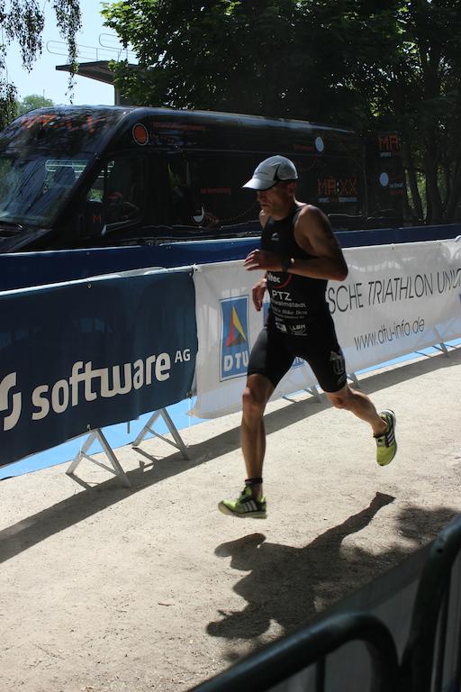 Super tolles Wetter kündigte sich bereits am frühen Morgen gegen halb sechs an, zwar noch etwas frisch mit gerade mal 16 Grad, ließ der Blick zum Himmel bereits erahnen, das dies nicht so bleiben würde, Somit machten sich insgesamt zehn SC N Athleten mit einem recht großen Fan-Club auf dem Weg nach Darmstadt. Das es an diesem Tag eine recht große Veanstaltung werden würde, zeigte ein Blick in die Startliste, über 1000 TeilnehmerInnen in den verschiedensten Startgruppen teilweise im Startabstand von 15. Minuten, eine doch recht unfaßbare Vorstellung, aber es funktionierte.... Die Teilnehmer der Hessenliga (außer Jugend und Junioren) wurden an diesem Tag automatisch mit in der Deutschen Meisterschaften im Sprint gewertet. Dies bedeutete, daß die Startgruppen nach Altersklassen gestartete wurden. Somit waren die Jungen Athleten Philipp Roth, Robin Reitz, Christopher Ide, und Benjamin Reitz gleich in der ersten Startgruppe. Horst Wiegand durfte anhand dieser Reglung erst eine dreiviertel Stunde später in das doch recht schmutzige Wasser des Woog eintauchen. In der Spitzengruppe der Schwimmeinheit waren auch gleich unsere Reitzenden Brüder Benni und Robin zu bestaunen. Dicht gefolgt von Christopher und einen Moment später Philipp. Auf dem Rad machten Robin und Chris mächtig Druck und so hatten sie Benni in der ersten Radrunde eingeholt, dieser zeigte sich davon aber wenig beeindruckt und gab weiterhin Gas, gefolgt von Philipp.... Eine Wettkampregelung für die Hessenliga lautete an diesem Tag Windschattenfahrverbot... dies bedeutet, es waren Motorräder auf der Radstrecke im Einsatz. Gleich zu Beginn konnten wir beobachten, wie ein Motorradfahrer sich auf den Radfahrer rechts hinter sich konzentrierte und dabei fast den Radfahrer links neben sich .... ich schreib es jetzt nicht auf... Bilder habt ihr jetzt selbst im Kopf. Irre war auch zu beobachten, dass Radfahrer in Gruppen von ca. 20 Athleten angefahren kamen, dahinter eine Lücke, ein Motorrad, dahinter zwei Athleten, nach einer weiteren Lücke eine weitere große Gruppe aber kein Motorrad in Sicht. Also ein Fazit zu dieser Beschreibung, es wäre wohl sinnvoller gewesen, auch bei diesen Wettkämpfen eine Windschattenfreigabe zu erlassen. Die Motorradfahrer waren eher eine "Gefahr" und die flache Strecke war bzw. ist nun einmal mehr als gut für das Windschattenfahren geeignet, zumal eine "gerechte" Auslegung anhand der oben beschriebenen Situation überhaupt nicht möglich gewesen ist... und welcher Athlet geht da nicht mit... hätten die HTV Wettkämpfer offene Augen gehabt hätten sie über 50% der Teilnehmer mit einer Zeitstrafe belegen müssen .... Robin durfte nach einer starken Radeinheit als erster sein Rad wieder am Woog abstellen, gefolgt von Chris, der sich bereits in der ersten Laufrunde von den Anfeuerungsrufen der SC N Fans so motiviert fühlte das er eine Siegerpose wie beim Zieleinlauf zeigte... ;) Benni zeigte bei der letzten Einheit des Tages, das im Laufen mit ihm zu rechnen ist, obwohl Philipp ihn noch einholte. Im großen Feld der höheren Altersklassen und Senioren hatte der schönste Triathlet (...es war laut und deutlich auf dem Woog Gelände zu hören...) Horsti die volle Aufmerksamkeit der SC N Fans bei der abschließenden Laufeinheit. Achilles hat gehalten und Horsti strahlte uns an. ;) Nur eines weiss ich nicht, ober er bei der nachwettkampflichen Speicher auffüllenden Bretzel von Benni als Wettkampfverpflung zugeriffen hätte. ;) Fazit: Alle fünf zeigten einen starken Wettkampf mit viel Biss und Kampfgeist für das Team!!! Besonders bei den Bildern von Philipp zu erkennen ich habe diesmal keines wo er so wunderbar lächelt, aber gut alles gegeben das zählt...