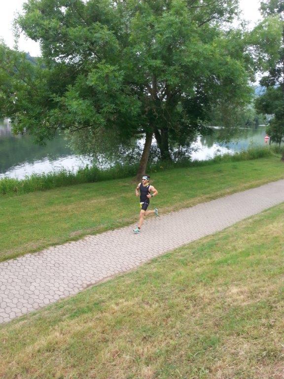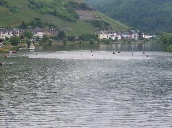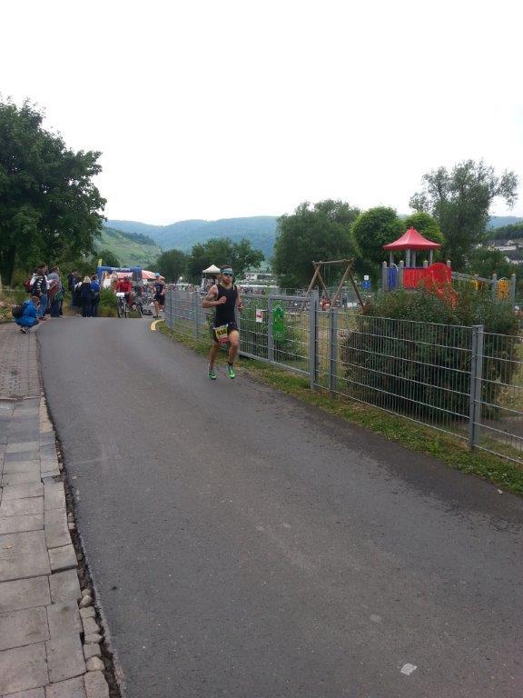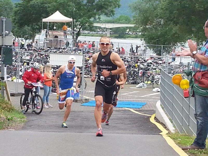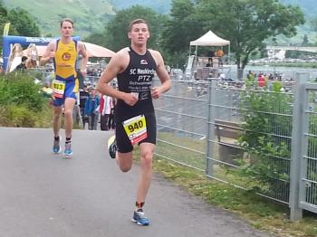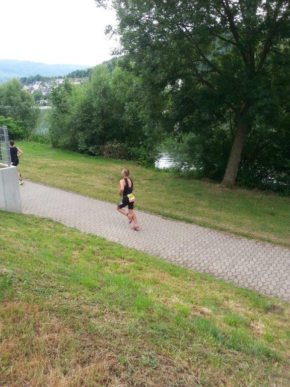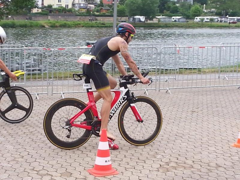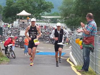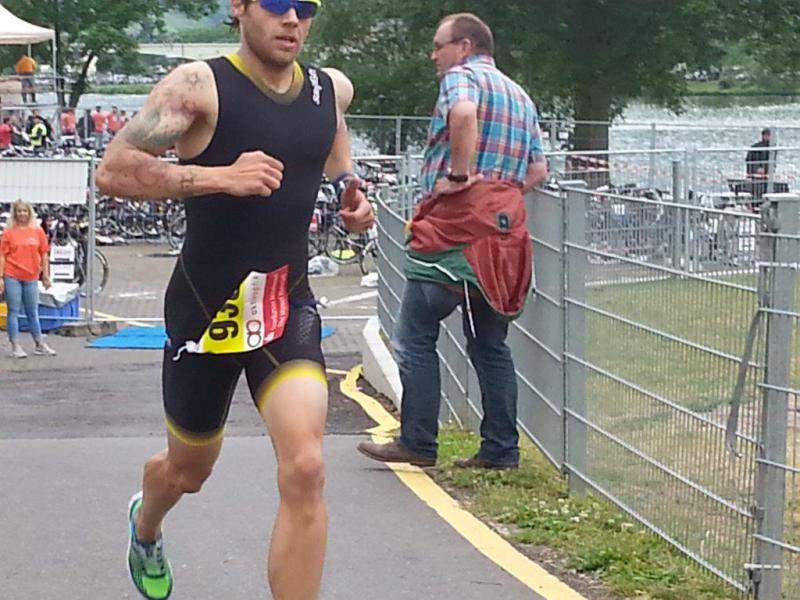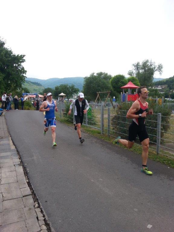 Zum zweiten Regionalligawettkampf ging es an und in die Mosel. Wie in Darmstadt stand eine Sprintdistanz auf dem Programm. Bei 19° Wassertemperatur schwammen die Athleten mit Neoprenanzug zunächst 750 m moselabwärts. Martin konnte Dank starkem Wechsel Peter in der Wechselzone überholen, Thomas folgte dicht auf. Entgegen der Wettkampfausschreibung entartete der Radsplit über 20 km zum Windschattenrennen, so dass die ersten Radgruppen bevorzugt waren und einzelne Radler kaum eine Chance hatten. Philipp, der ein tolles Regionalligadebut ablieferte und Junior Jonas, bereits mit Erfahrungen aus der 2. Bundesliga ausgestattet, kamen hier nicht mehr heran. Auf der flachen 5 km-Laufstrecke entlang der Mosel fiel dann die Entscheidung mit harten Positionskämpfen, denn es zählte ligaüblich nicht die Zeit, sondern die Platzziffer. Martin am Ende starker 6. Thomas und Peter folgten als 20. bzw. 24. Philipp als 43. in der Wertung und Jonas als 52. komplettierten das gute Mannschaftsresultat. Mit Rang 5 nach dem 4. Platz in Darmstadt konnte Gerhard mit seinem Team zufrieden die Heimreise antreten. Dank auch an die Luxemburg-Starter, die nach ihrem anstrengenden Rennen eine Super-Unterstützung an die Strecke mitbrachten. Vielleicht kommen noch ein paar Bilder......