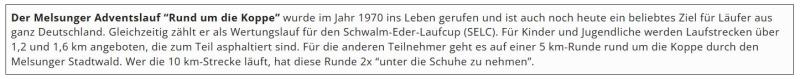 Veranstalter: Lauftreff Melsungen Externer Link zu den Ergebnissen