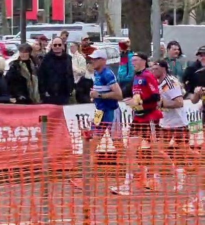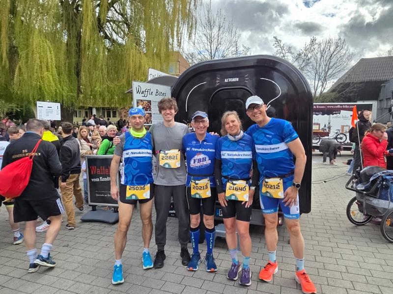 Martina Spreer mit Sohn Alex, Torsten K-S, Claus G., Marcel M. und Jürgen K. haben sich nach PAD begeben, um den Osterlauf zu absolvieren. Jürgen hatte Pech. Er wurde von einem anden angerempelt und ist gestürzt. Er musste den Lauf abbrechen. Marcel hatte die Aufgabe als Peacemaker zu funktionieren.
