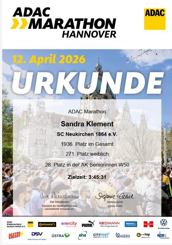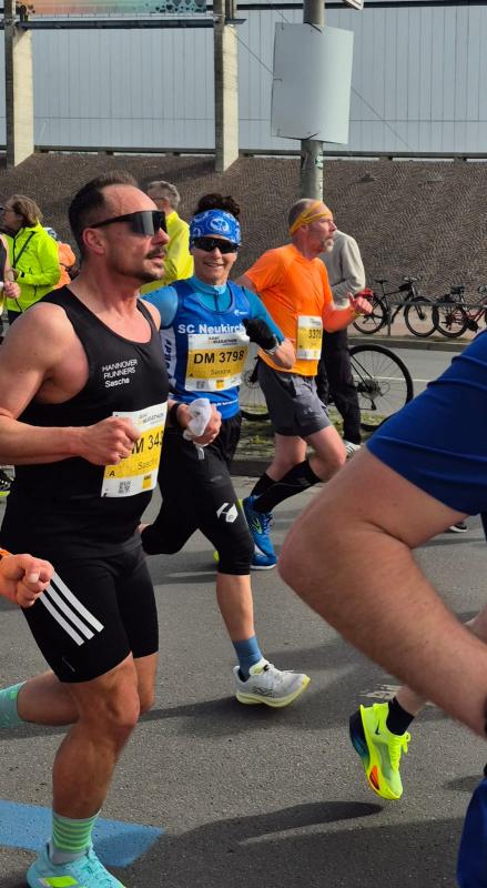 Unsere Sportkameradin Sandra Klement ist in Hannover den Marathon gelaufen. Sandra: Der letzte längere, größere Wettkampf ist schon ein wenig her. Mit Marc, unserem Trainer, erstmal nachgedacht, wann das war...im Jahr 2022 zur Challenge Kaiserwinkl-Walchsee 2022 und Jahr 2019 zur Challenge Roth...das sind vier bis sieben Jahre nun weiter. Die Zeit vergeht, man wird auch nicht jünger! Da musste nun ein Formcheck her. Die Wettervorhersage war die vergangene Woche noch richtig schlecht, mit Regen für den Wettkampftag angesagt, aber da soll man sich auch heutzutage nicht drauf verlassen. Der Samstag und Sonntag waren auf jeden Fall herrlich und optimal für den Marathon. Danke Wetter! Mit den körperlichen Einschränkungen muss man sehen, ob längere Wettkämpfe machbar sind...wir werden sehen. Ich bin erstmal zufrieden wie es lief!