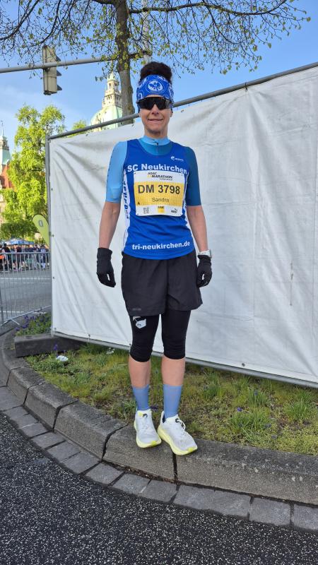 Unsere Sportkameradin Sandra Klement ist in Hannover den Marathon gelaufen. Sandra: Der letzte längere, größere Wettkampf ist schon ein wenig her. Mit Marc, unserem Trainer, erstmal nachgedacht, wann das war...im Jahr 2022 zur Challenge Kaiserwinkl-Walchsee 2022 und Jahr 2019 zur Challenge Roth...das sind vier bis sieben Jahre nun weiter. Die Zeit vergeht, man wird auch nicht jünger! Da musste nun ein Formcheck her. Die Wettervorhersage war die vergangene Woche noch richtig schlecht, mit Regen für den Wettkampftag angesagt, aber da soll man sich auch heutzutage nicht drauf verlassen. Der Samstag und Sonntag waren auf jeden Fall herrlich und optimal für den Marathon. Danke Wetter! Mit den körperlichen Einschränkungen muss man sehen, ob längere Wettkämpfe machbar sind...wir werden sehen. Ich bin erstmal zufrieden wie es lief!
